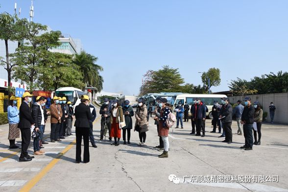 順威股份董事/總裁莫綺顏、董事/副總裁成再育、董事/副總裁/董事會秘書李笛鳴、工會主席/審計部總監童貴云、順德塑料分公司總經理范瑞強、順德模具分公司總經理龐利彬、集團戰略及商務中心/集團人力行政中心總監羅華、國內營銷中心總監助理/大客戶部高級經理王曉菲,一眾公司高管團隊在廠區廣場迎接中外媒體參觀團一行的到來。